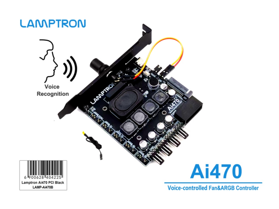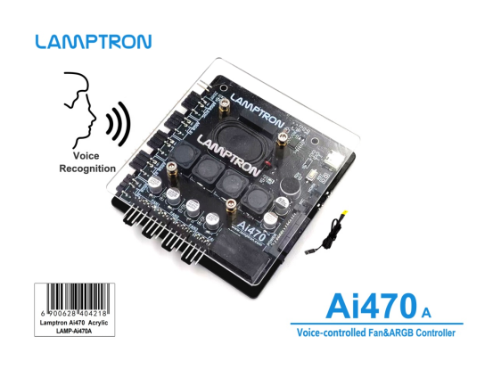 Lamptron Ai470 Voice-controlled 4-way High Power PWM Fan&ARGB Controller is the world 1st voice-controlled PWM fan&ARGB lights controller.
