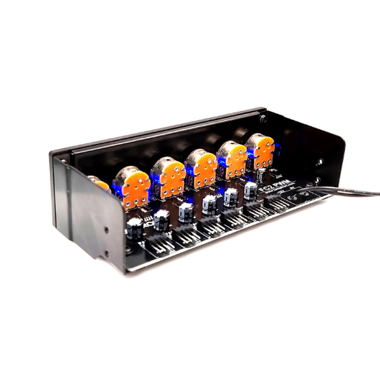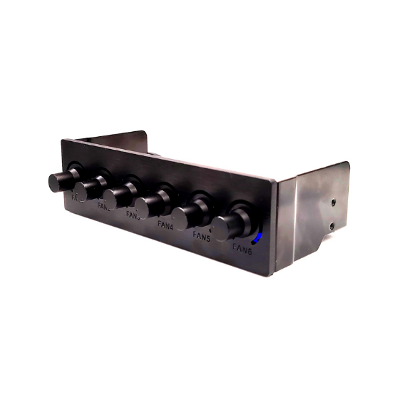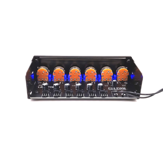 From the Lamptron design team comes the FC-2 fan controller! Designed from feedback from users like you, This device can control 6 channels that supports high power output, CNC milled faceplate from blocks of 3/4" thick aluminium, and blue leds behind each knob. Smooth control of your fans for power at your finger tips!